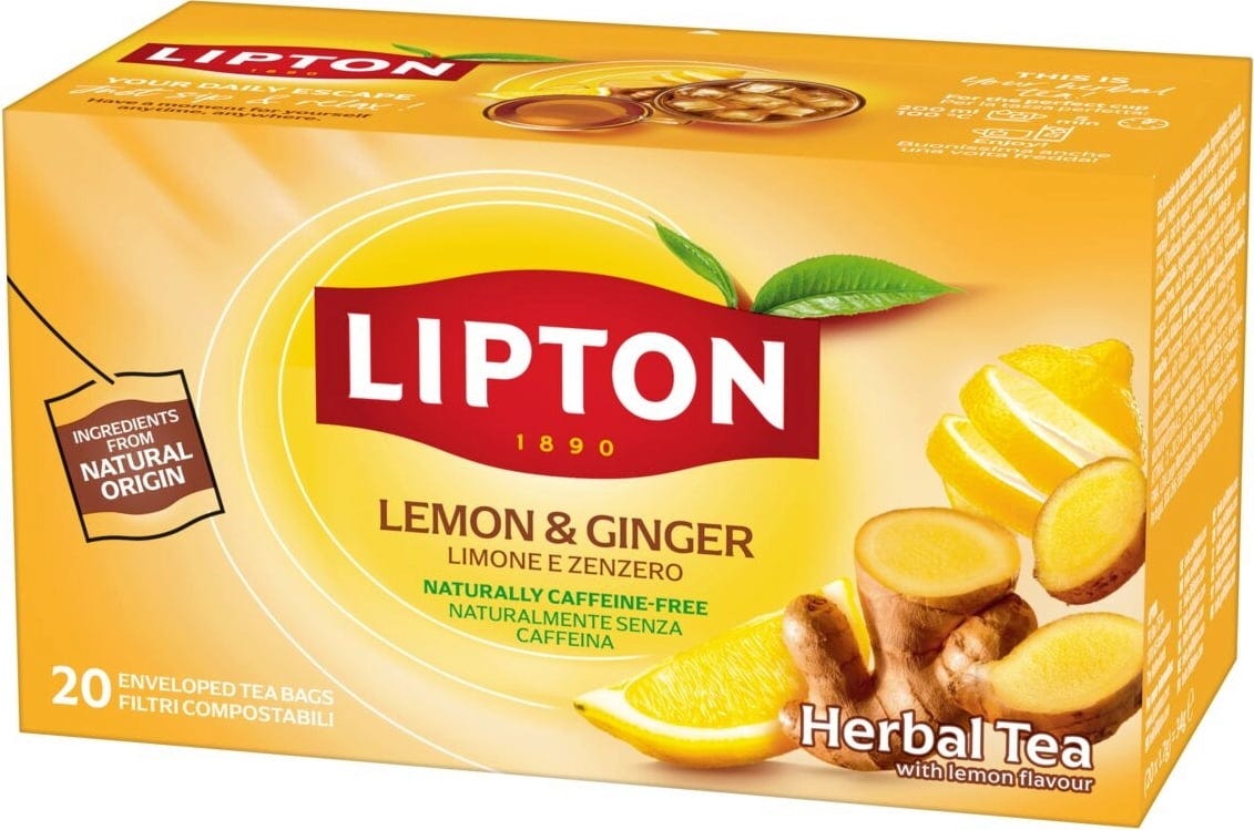 Mit dem Lipton Lemon Ginger Refresh holst du dir die ideale Kombination aus spritziger Zitrone und der charakteristischen Würze des Ingwers direkt in deine Tasse! Du genießt hier eine koffeinfreie Rezeptur aus rein natürlichen Zutaten, die sich perfekt als Heißgetränk nach dem Essen oder als kühler Cold Brew an warmen Nachmittagen eignet. Die einzeln verpackten, kompostierbaren Beutel sorgen dafür, dass das frische Aroma bei jeder Zubereitung vollständig erhalten bleibt.