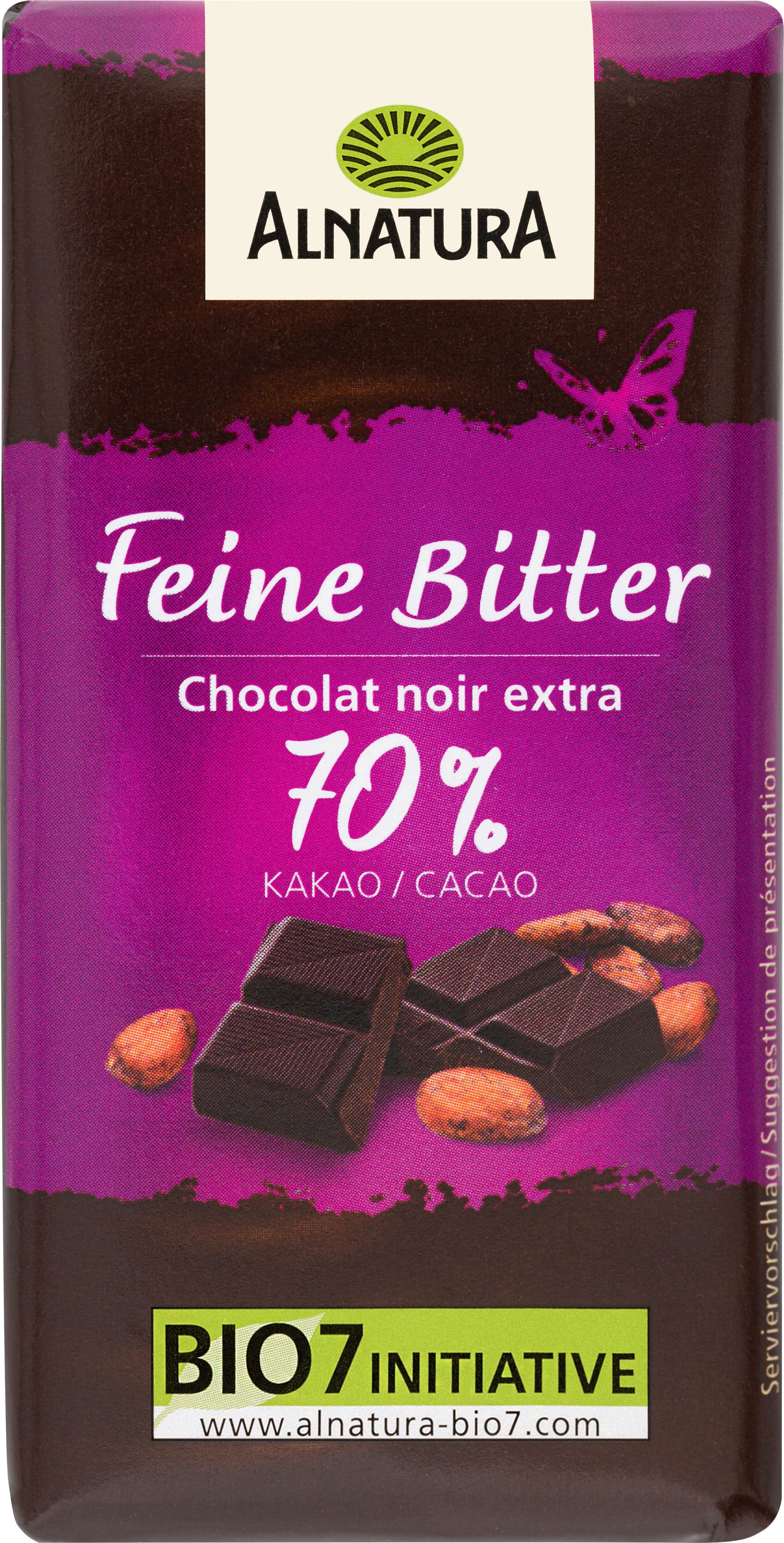 Die Alnatura Bio Schokotäfelchen Feine Bitter“ kommen mit 70 % Kakaoanteil im Miniformat. Perfekt als zartschmelzender Snack. Hergestellt ohne Lecithinzusatz. Alle Zutaten stammen aus Bio-Landwirtschaft.