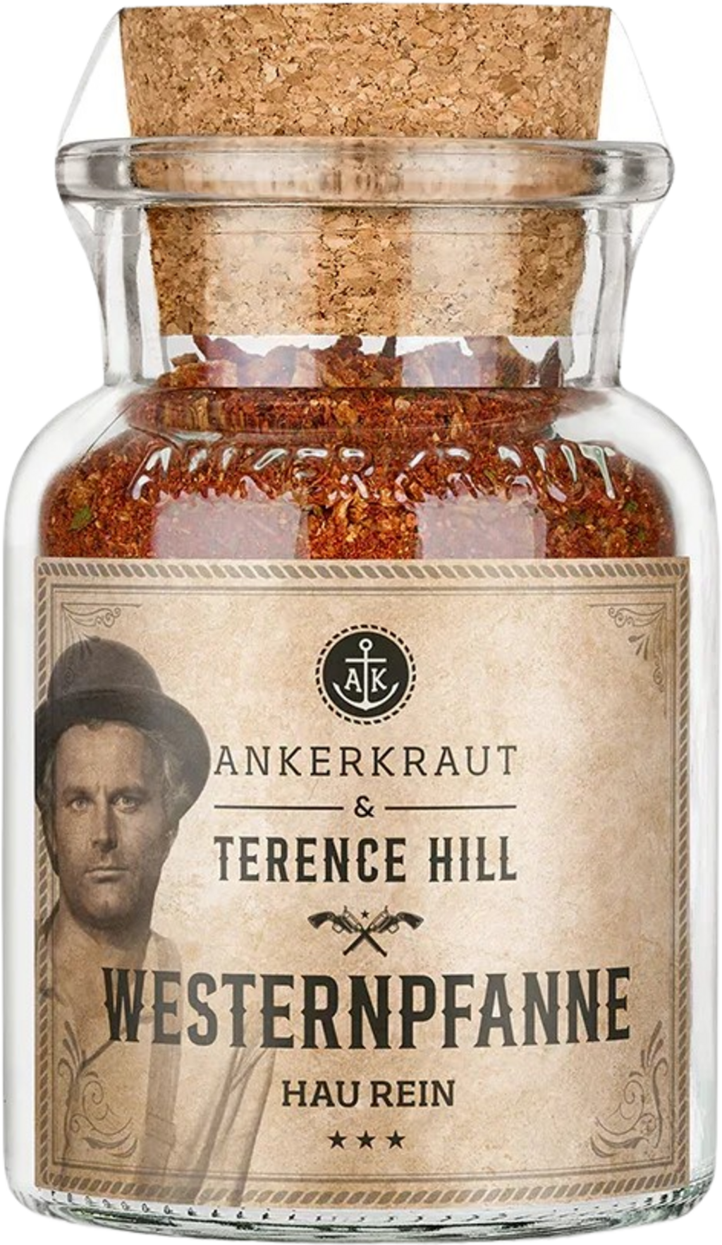 Die Westernpfanne Gewürzmischung im Terence Hill Style von Ankerkraut gibt allerlei Pfannengerichte eine intensive Würze. Paprika, Rauchsalz, Chili, Zimt und viele weitere würzige Zutaten machen deine Pfannengerichte zu einem unvergleichlichen Erlebnis.