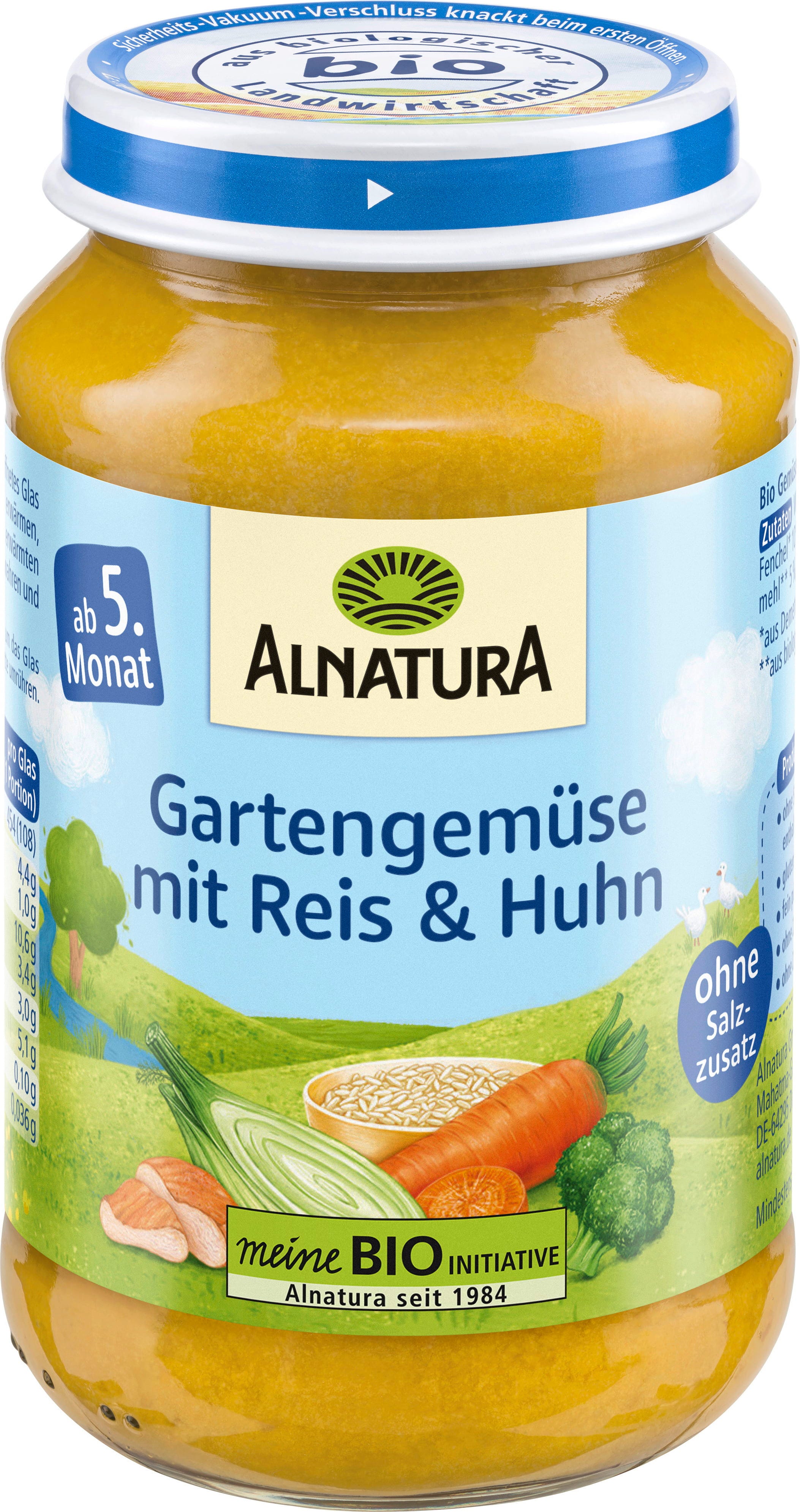 Alnatura Organic Garden Vegetables with Rice & Chicken Baby Jar, 190 g