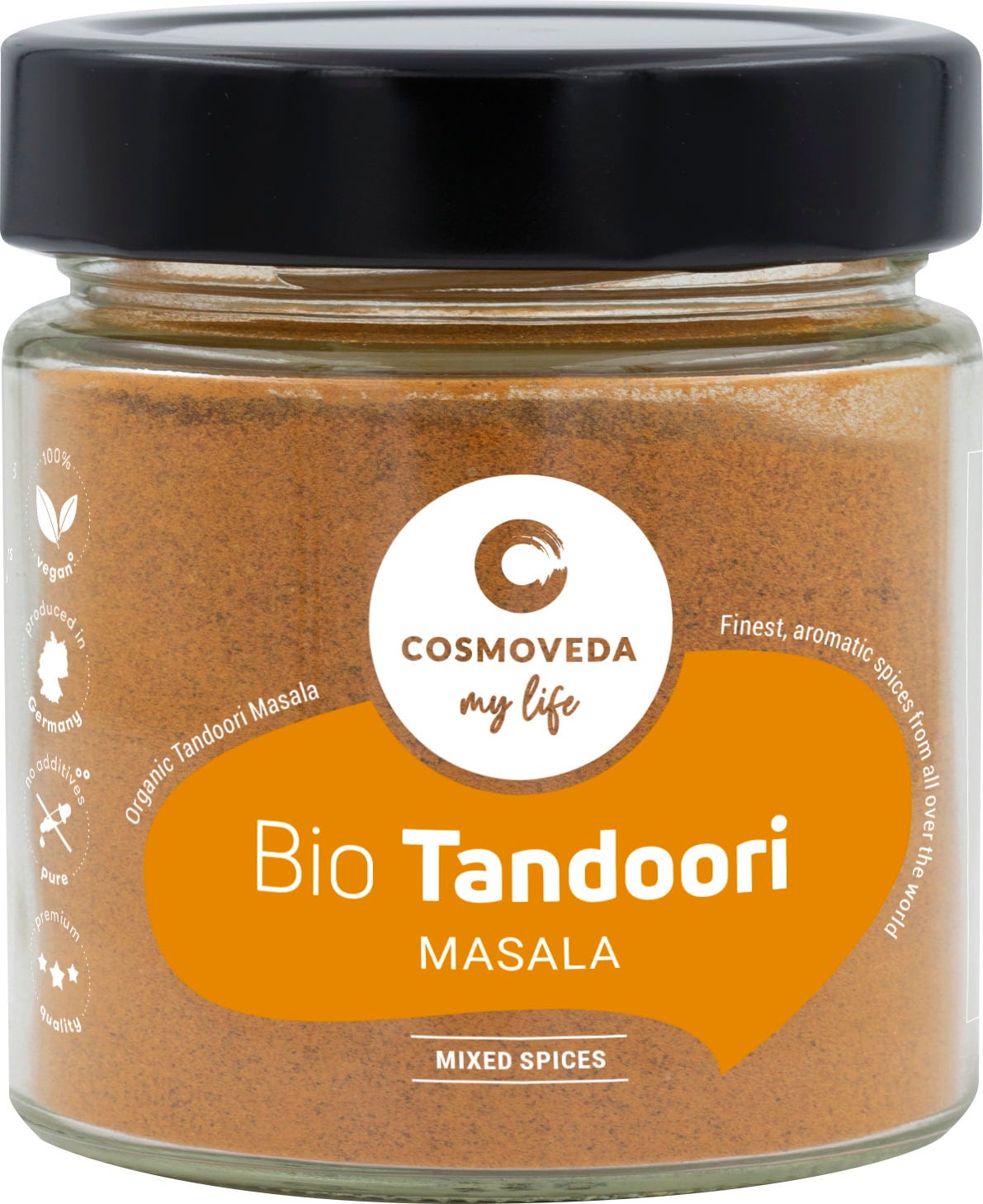 COSMOVEDA Organic Tandoori Masala, a specially formulated Ayurvedic blend of fine spices for making delicious Tandoori. Also great for marinating.