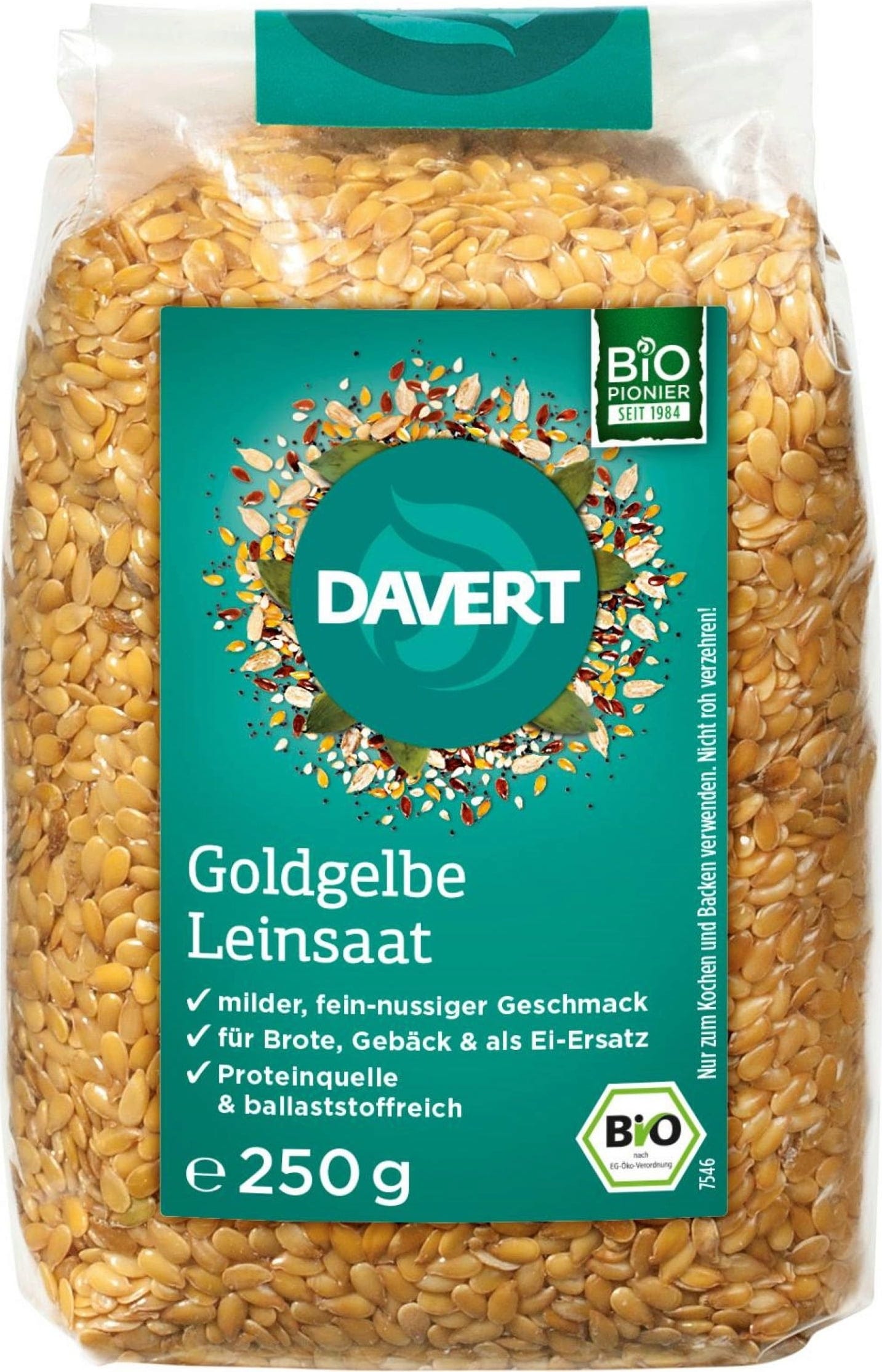 Add a particularly fine touch to your muesli and baked goods with this organic golden flaxseed! Compared to the brown variety, this type impresses with its milder, fine nutty flavour. Thanks to its excellent swelling capacity, it is not only an ideal ingredient for bread, rolls and homemade muesli bars, but also serves as a natural egg substitute in vegan cuisine, simply mixed with a little water, it binds doughs in a plant-based way.
