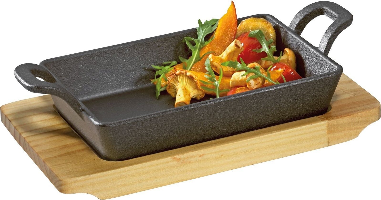 Perfect for delicious side dishes on the barbecue, be it seafood, vegetables or gratinated goat's cheese, the robust cast iron serving pan is a versatile alternative to disposable aluminium grill trays.