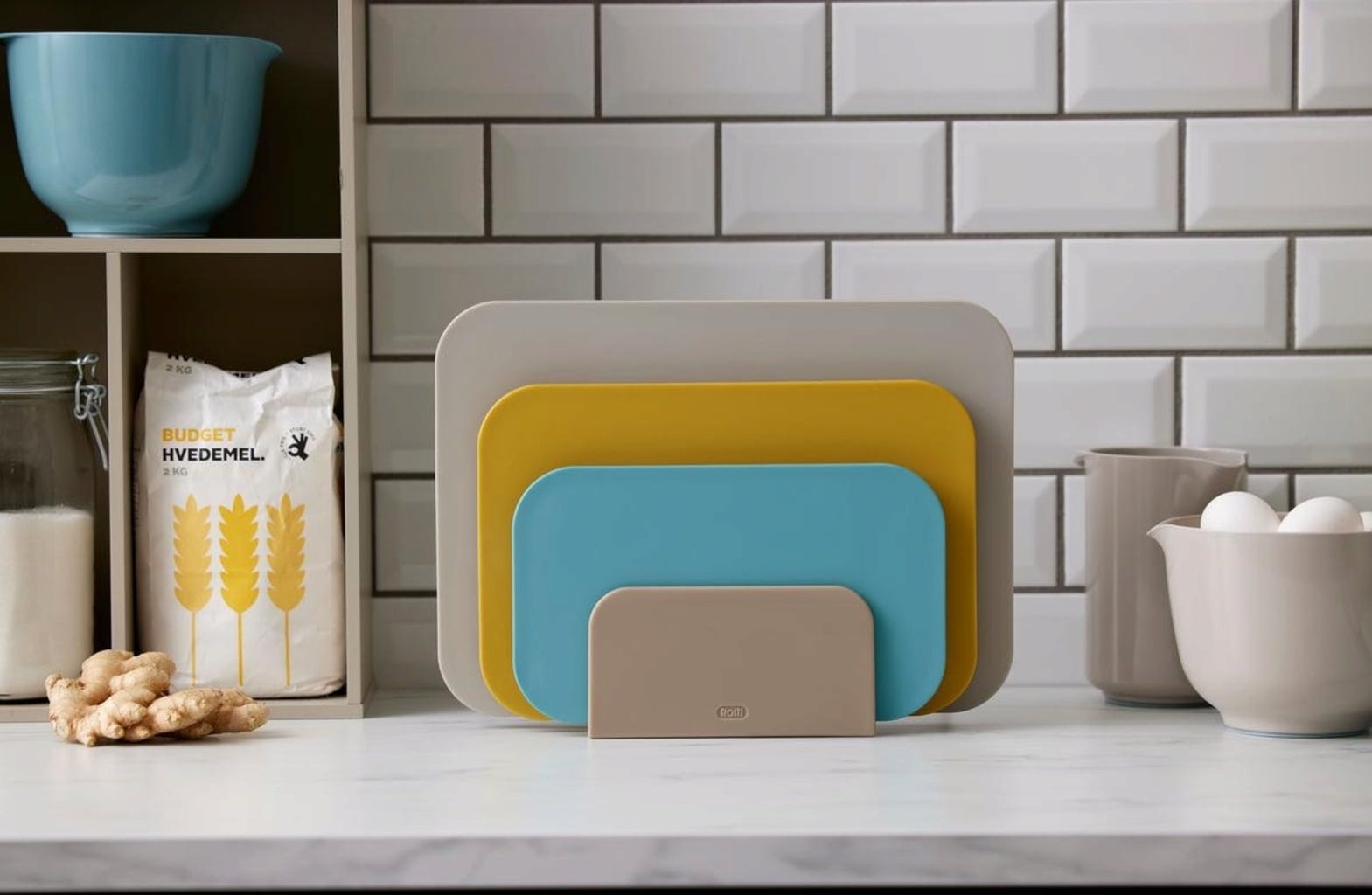 The set includes a practical holder that is not only a space-saving way to store the chopping boards, it also ensures better hygiene. The chopping boards are held a distance from each other when placed in the holder ensuring that they are well ventilated after use. Grooves on the underside ensure optimum air circulation, even if a board is still damp.