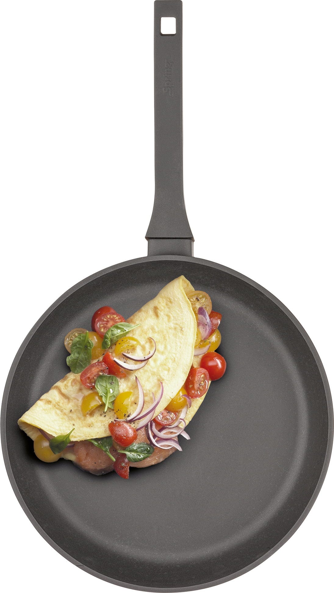 The full-surface induction base ensures extremely fast and energy-saving heating on all hob types. While you braise comfortably on the extra-large frying surface, the ergonomically shaped and heat-insulated plastic handle offers you a secure grip at all times.