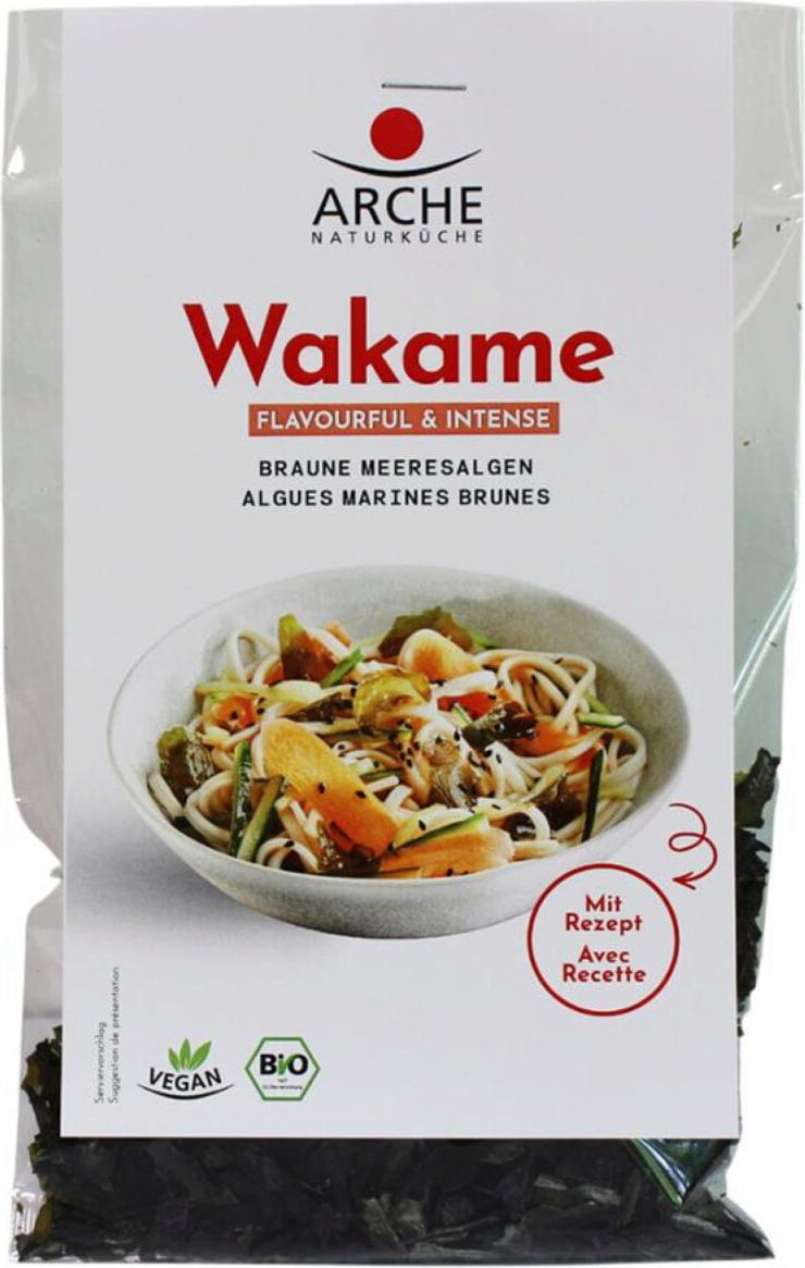 Remarque : Toutes les algues utilisées par Arche Naturküche sont rigoureusement et régulièrement contrôlées pour exclure la présence de résidus de métaux lourds et vérifier leur teneur en iode (pour plus d'informations sur la consommation d'algues marines, reportez-vous à la rubrique en bas de page). Les algues wakamé bio proviennent de collecte écologique, sont séchées en douceur et restent autrement naturelles. En conséquence, un revêtement blanc peut se former sur les algues - cela ne provient que du sel cristallisé et ne représente pas un défaut de qualité.