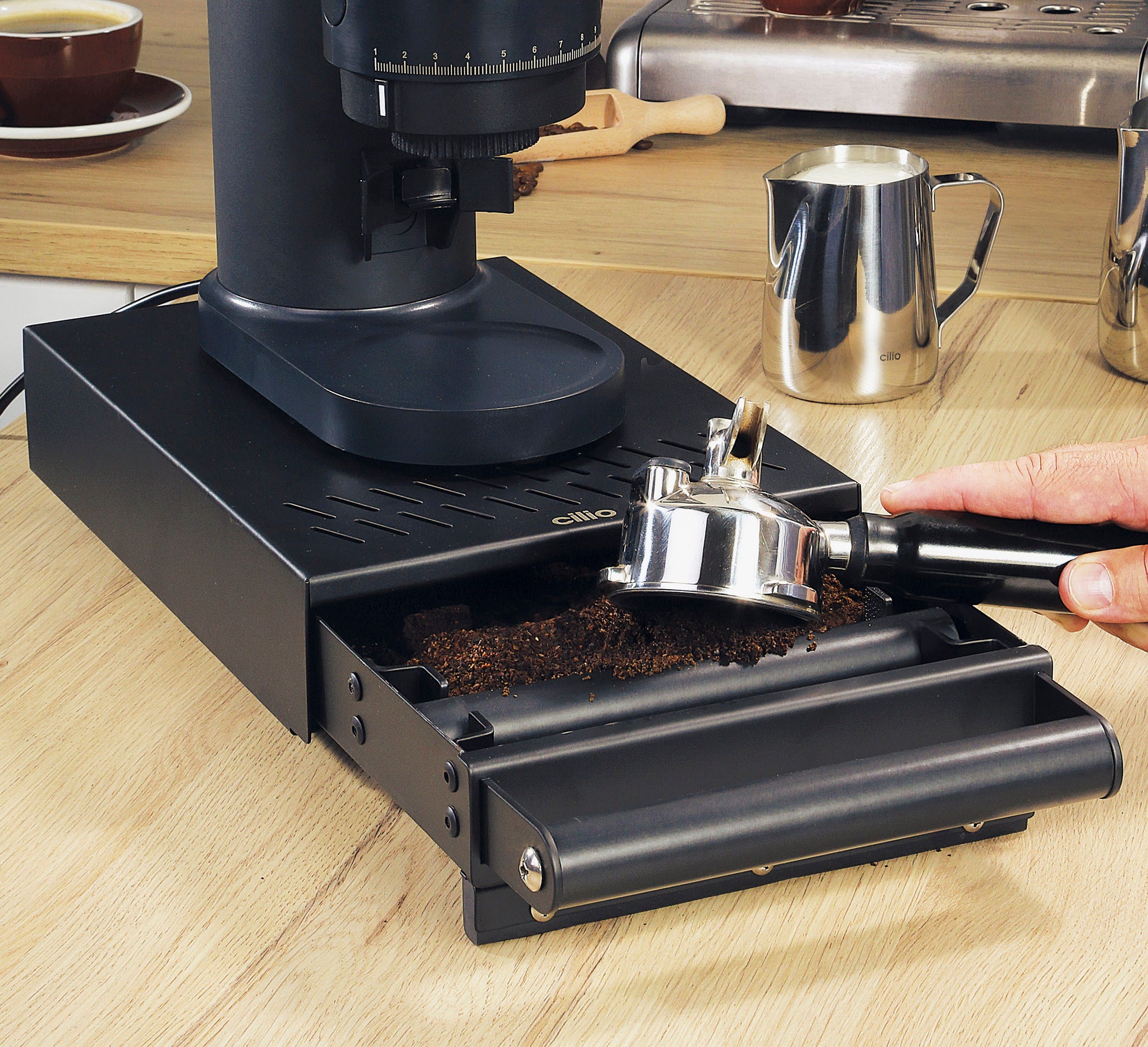 Complétez votre espace barista à domicile avec le Tiroir à Marc BARISTA de cilio. Il permet de jeter le marc de café de manière élégante et compacte. Sa structure robuste et ses pieds antidérapants en font également une excellente base pour une petite machine espresso ou un moulin électrique. La barre d’abattage amovible et recouverte de caoutchouc amortit les chocs du porte-filtre, protégeant ainsi à la fois vos oreilles et votre matériel.