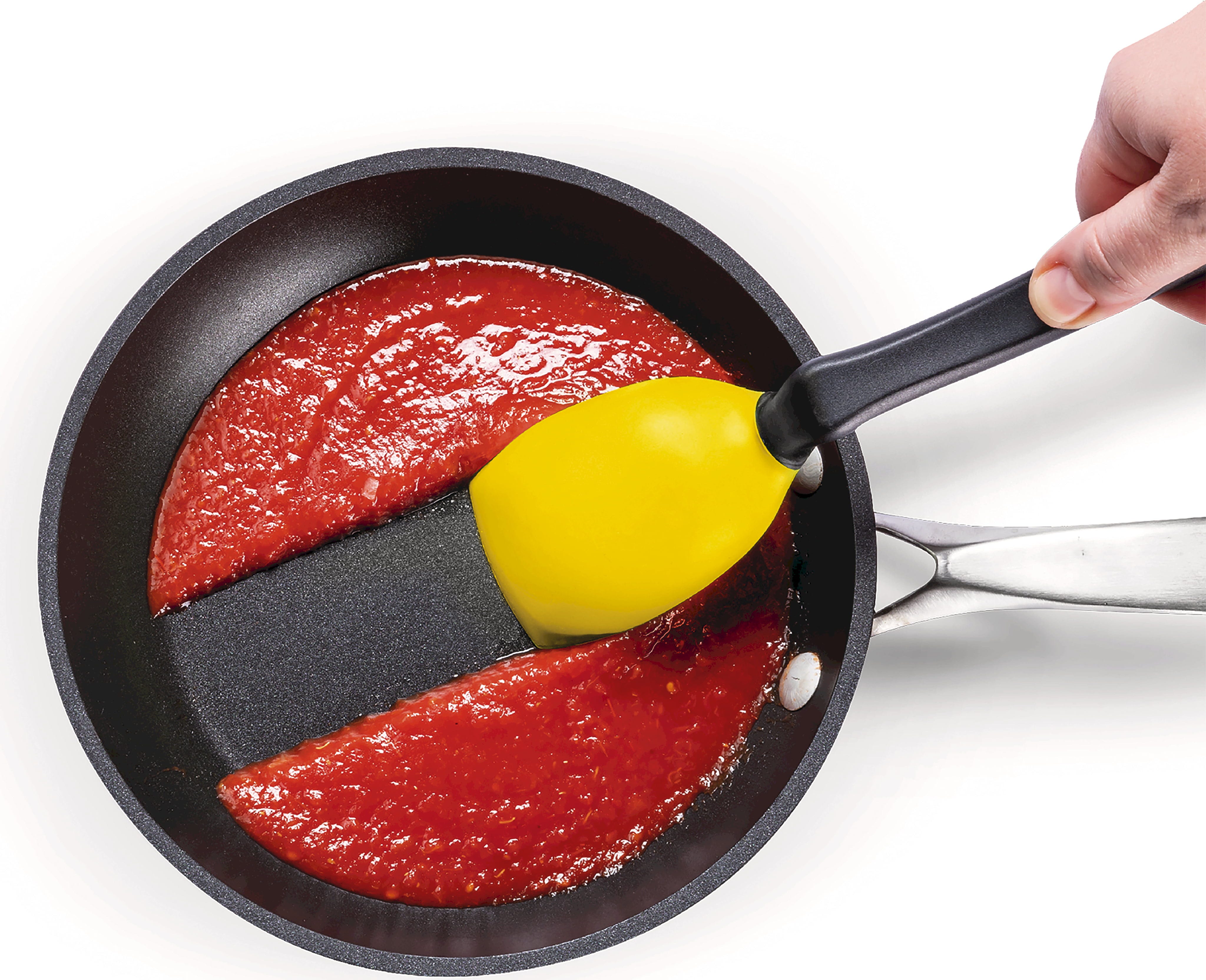 La courbure intégrée maintient la tête de la cuillère toujours surélevée du plan de travail, ce qui permet de la poser sans salir la surface. Elle peut également être accrochée directement au bord de la casserole. Les graduations intégrées permettent de mesurer précisément 15 ml (une cuillère à soupe), tandis que le Supoon résiste à la chaleur jusqu’à 260 °C.