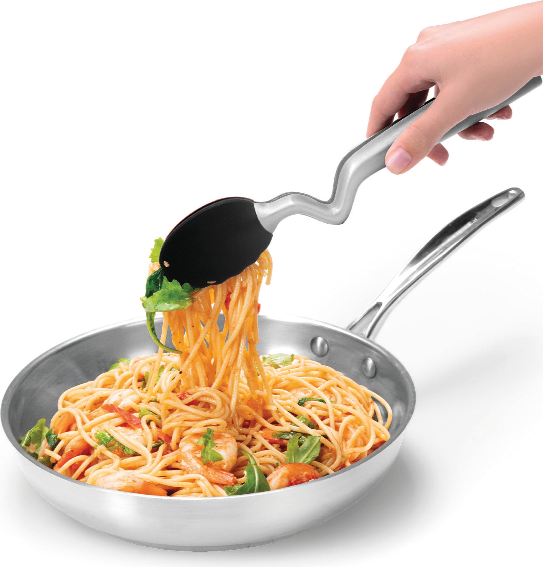 La pince de cuisine Clongs de Dreamfarm est la solution idéale pour cuisiner et servir. Grâce à la courbure unique du manche, les extrémités de la pince ne touchent jamais le plan de travail lorsqu’elle est posée. Avec l’ingénieux mécanisme à bouton situé à l’extrémité du manche, la pince s’ouvre facilement et se verrouille en toute sécurité d’une simple pression.