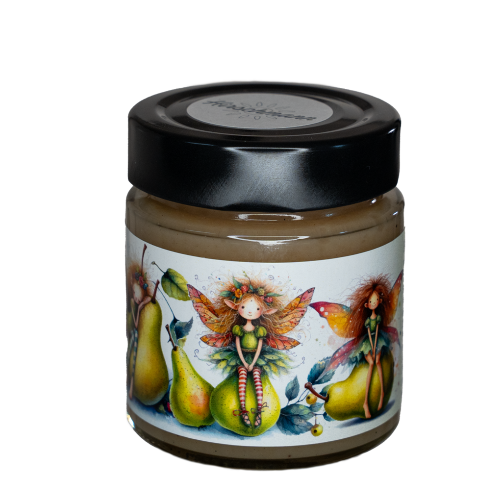 Les poires, le sucre, le chocolat blanc et la vanille se combinent pour former une pâte à tartiner aux saveurs paradisiaques. Un léger soupçon de rhum complète cette composition qui est parfaite simplement à tartiner sur du pain ou pour préparer de délicieux desserts.