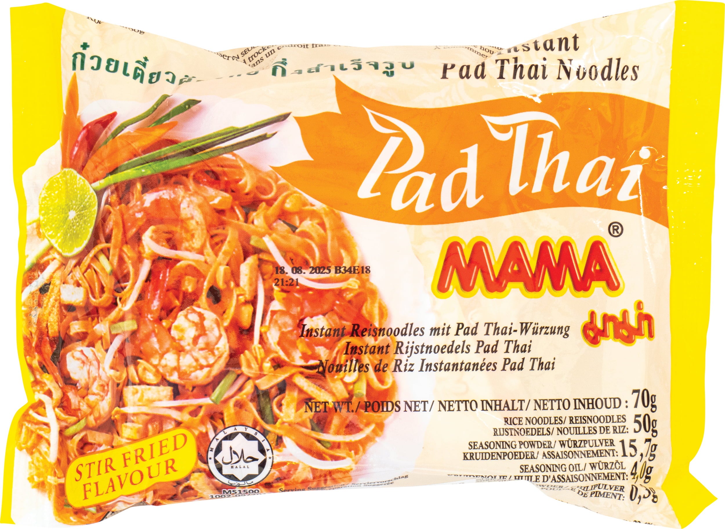 Les nouilles de riz instantanées MAMA version « Pad Thai » séduisent par un assaisonnement équilibré à base de tamarin, de sauce soja et de poudre de crevette. Prêtes en quelques minutes, elles offrent un plat chaud au caractère bien affirmé – idéal lorsque l’on a envie d’une touche asiatique savoureuse.