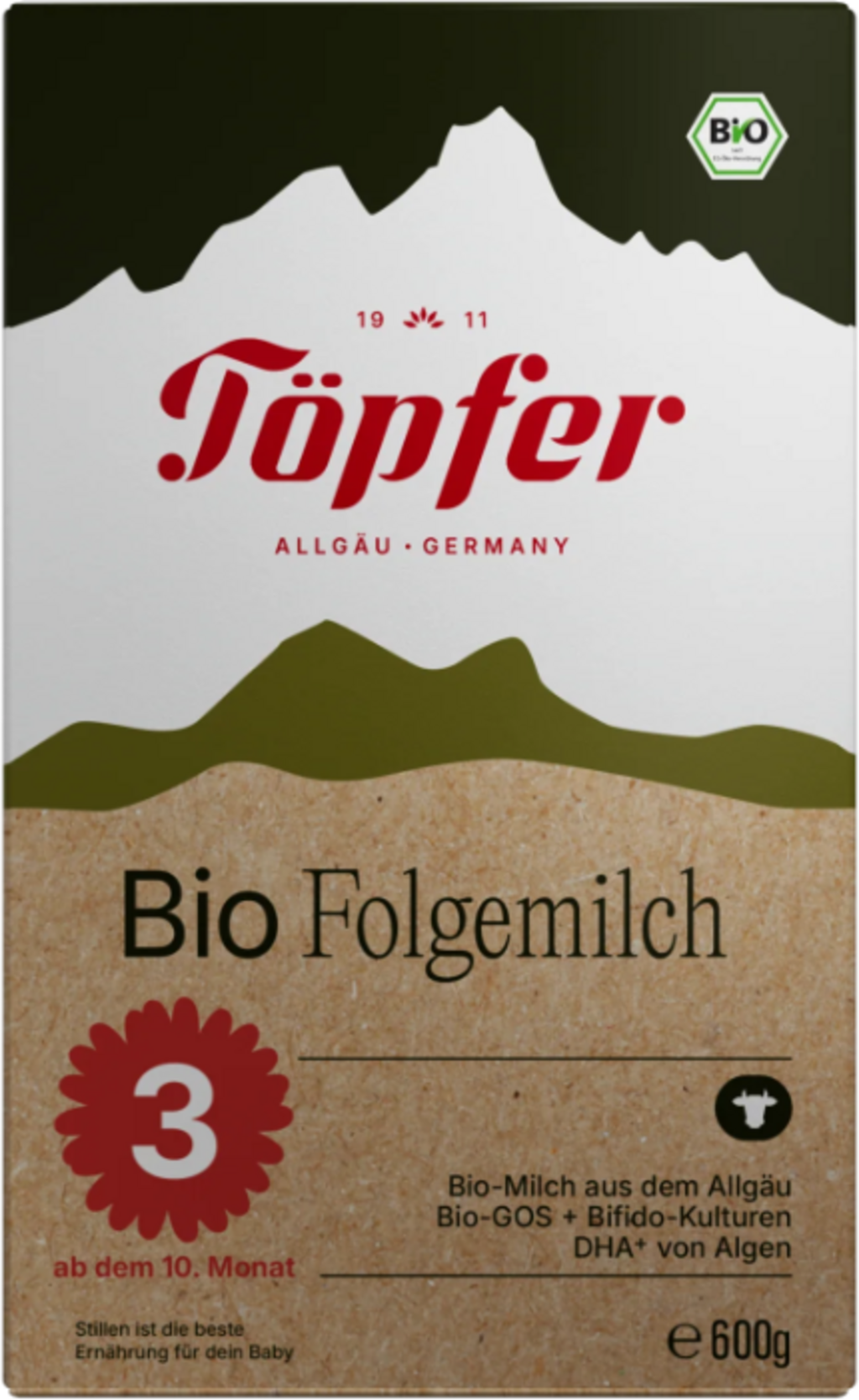 Töpfer Préparation de Suite à Base de Lait de Vache Bio 3, 600 g