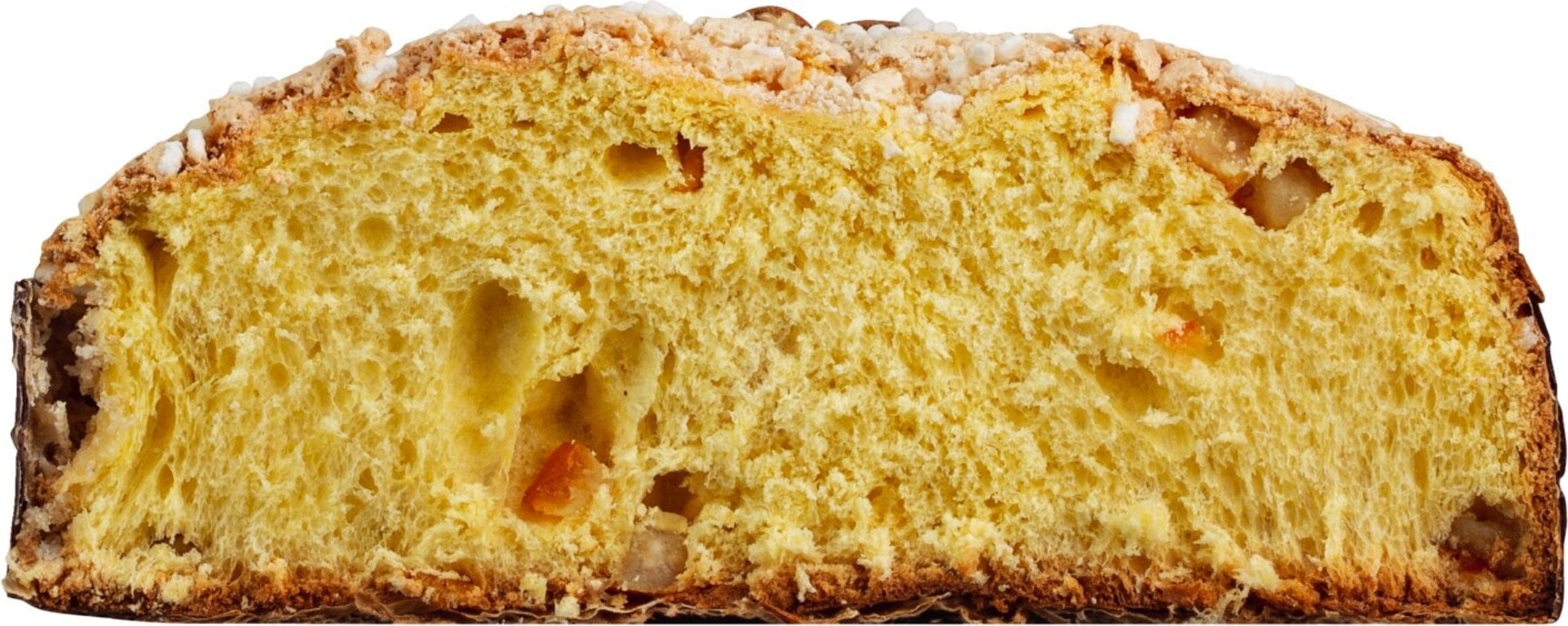 Pâte levée moelleuse enrichie d'écorces d'orange confites. Le glaçage croquant aux noisettes complète cette recette classique, décorée pour finir d'amandes entières.