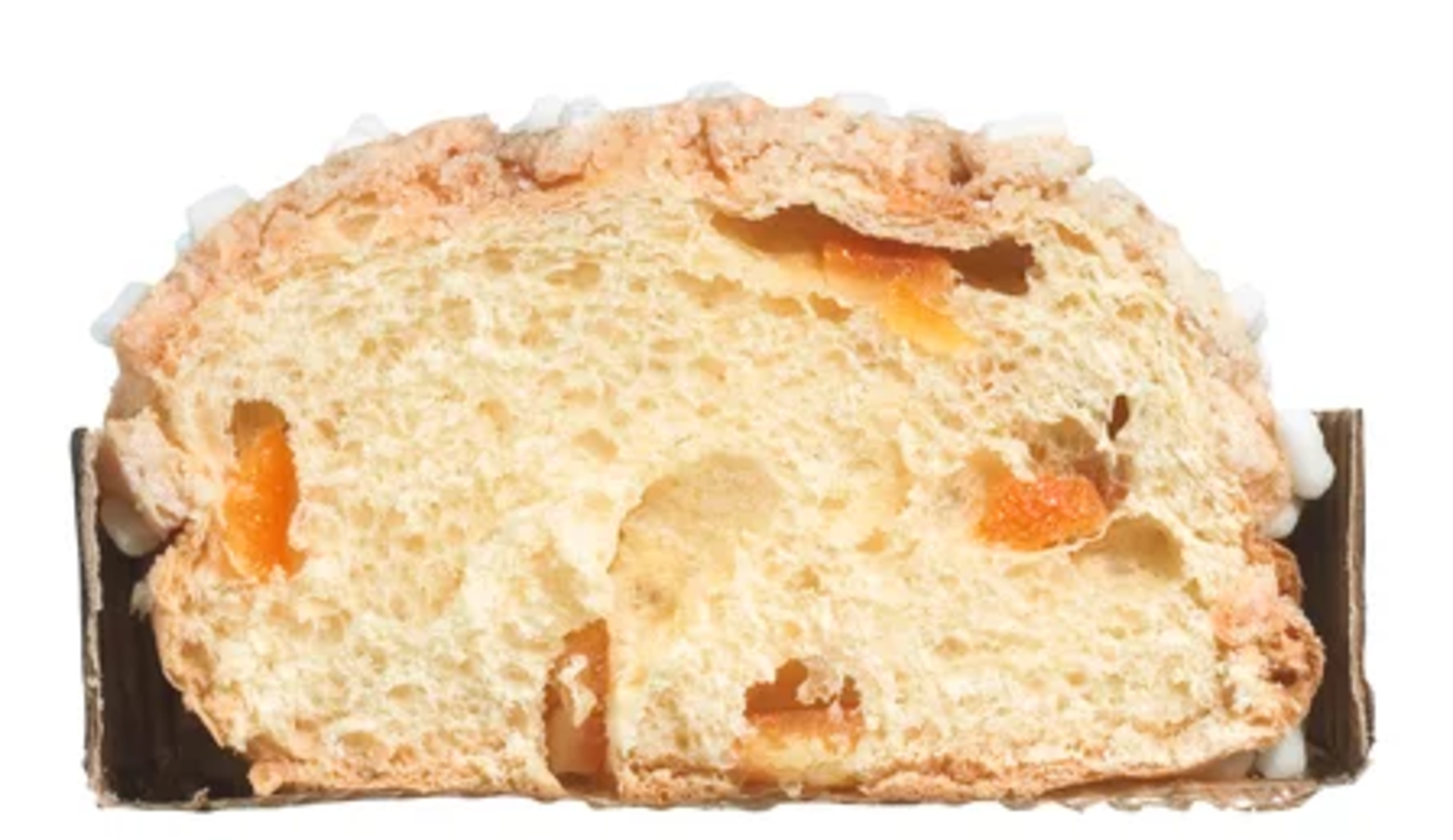 Farine de blé, Sucre, Glaçage (Sucre, Protéines, Huile de tournesol, farine de riz, Farine de noisette, Arôme), 13,27 % Écorce d'orange confite (Zestes d'orange, Sirop de glucose-fructose, Sucre, Acide citrique[1]), Beurre, Eau , jaune d'oeuf frais, Levain (Farine de blé, Eau ), Morceaux d'amande, Sirop de sucre inverti, Mono- et diglycérides d'acides gras (471e)[2], Oeuf entier, Beurre de cacao, Sel, arôme naturel d'orange