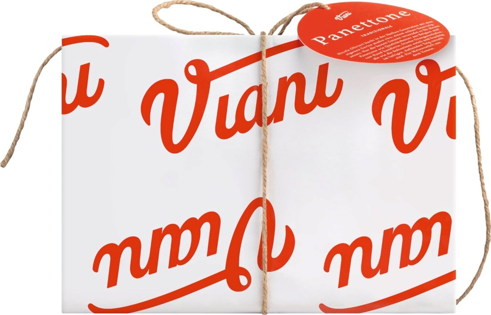 Le Panettone Tradizionale de Viani est élaboré selon une recette traditionnelle au levain. Sa pâte moelleuse et légère est agrémentée de raisins secs et de fruits confits, fidèle à la tradition.