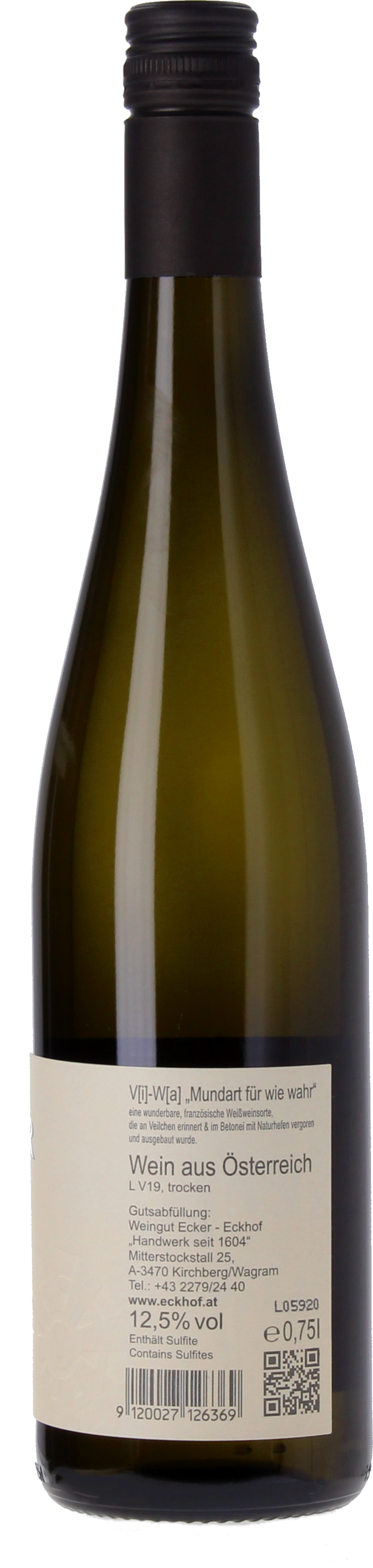 V[i] W[a] signifie en dialecte « comme c’est vrai », un clin d’œil au fait que le cépage français Viognier n’est pas officiellement reconnu comme cépage de qualité en Autriche, et ne peut donc pas figurer sur l’étiquette.