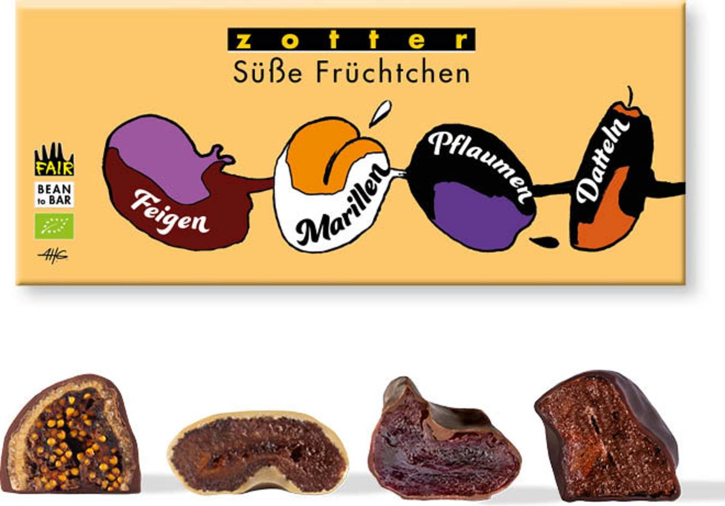 Zotter Schokoladen Mélange Ensoleillé de Fruits Bio Enrobés de Chocolat – Sunny Mix, 80 g