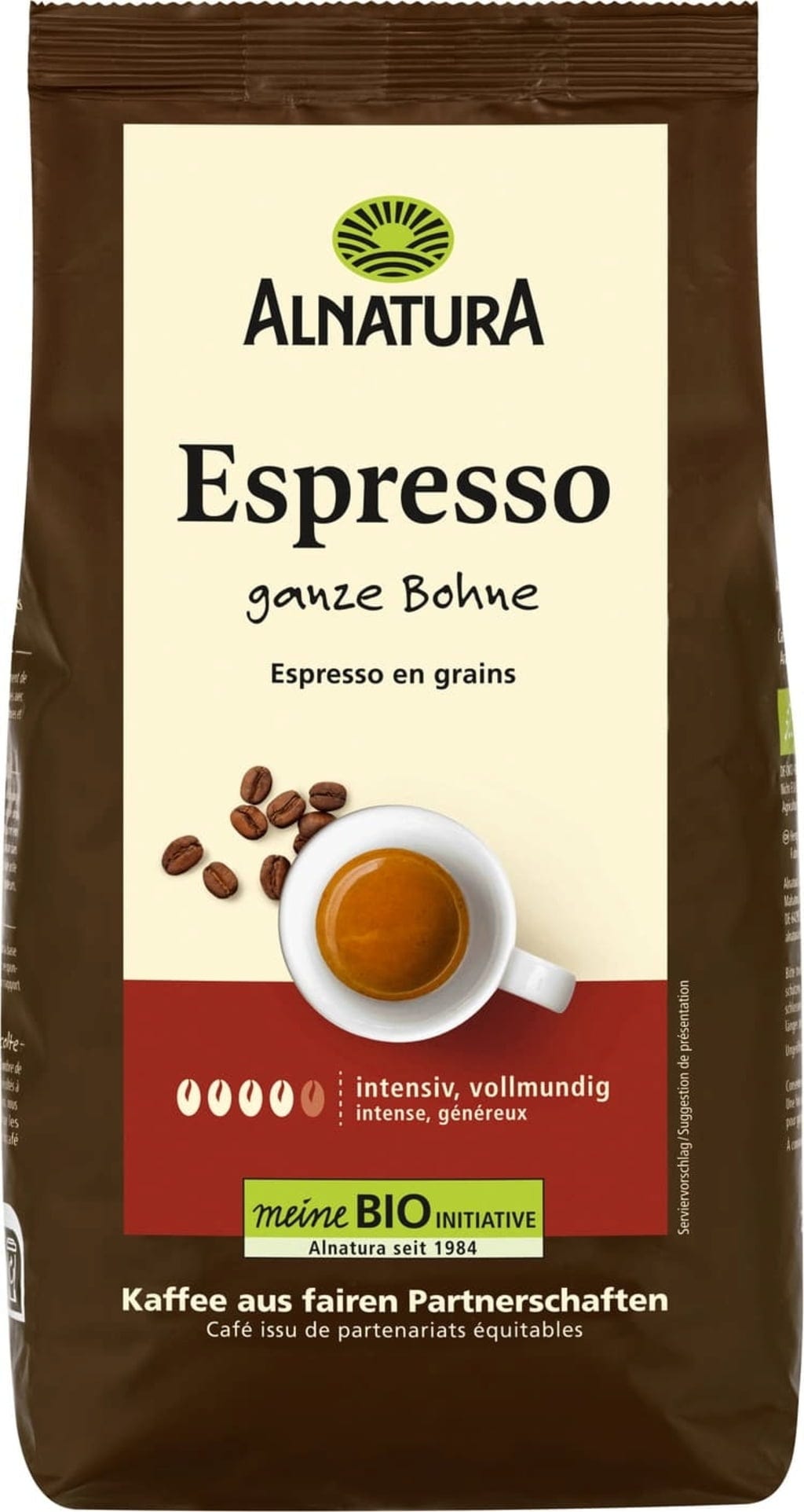 Intenso, corposo e dal tipico carattere italiano: l'Espresso Bio - in Grani di Alnatura unisce una miscela di chicchi Robusta e Arabica, tostati lentamente secondo metodi tradizionali. Conquista inoltre con una crema vellutata e fine.
