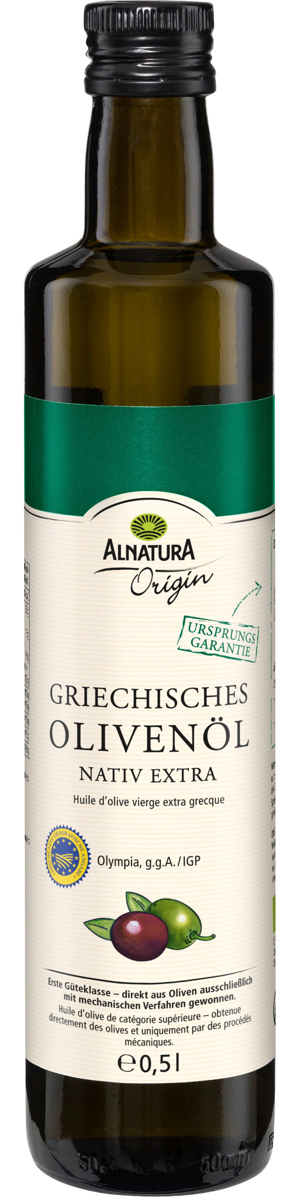 L'Origin - Olio Extra Vergine di Oliva Bio Greco di Alnatura è prodotto con olive greche Koroneiki. È ottenuto direttamente dalle olive esclusivamente con procedimenti meccanici. Questo olio conquista con la sua nota verde e fruttata. È ideale per preparare piatti mediterranei e insalate, ma si presta bene anche per cucinare, stufare e rosolare.