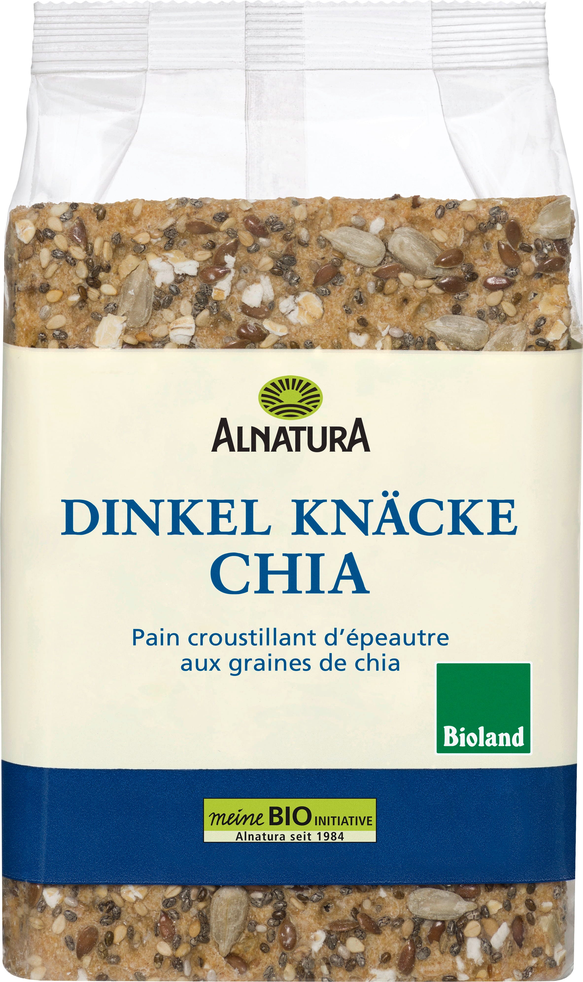Il Pane Croccante Bioland - Semi di Chia di Alnatura, a base di farro integrale, è arricchito con diversi semi. È uno snack ideale, ottimo da solo ma anche con creme spalmabili e dip.