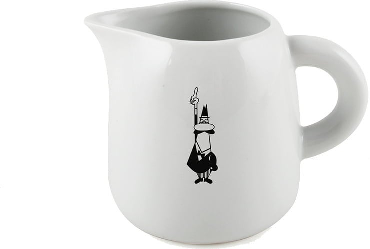 Realizzata in porcellana di alta qualità, la lattiera con l'iconico omino Bialetti può essere abbinata a qualsiasi set da caffè grazie alla sua forma elegante e semplice.