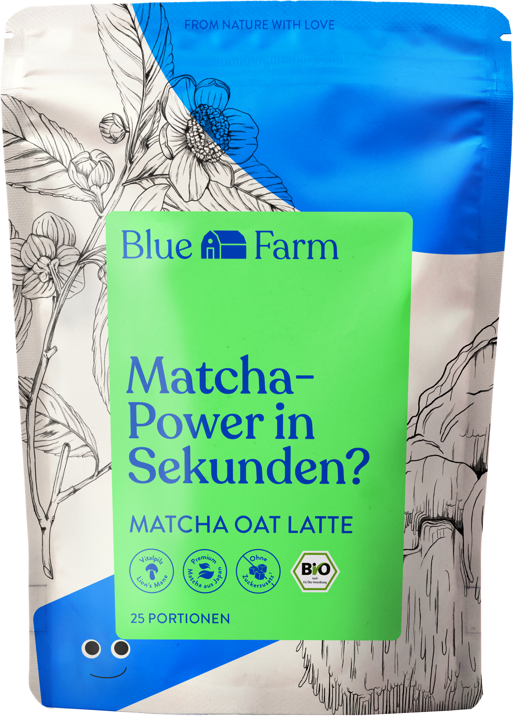 Organic Matcha Oat Latte di Blue Farm unisce il matcha di alta qualità al fungo medicinale Lion's Mane, conosciuto anche come "testa di scimmia", e all'avena in polvere, per creare un'esperienza di gusto speciale. Grazie alla sua nota delicata e leggermente amara e alla dolcezza naturale dell'avena, è una deliziosa alternativa alle classiche bevande vegetali.