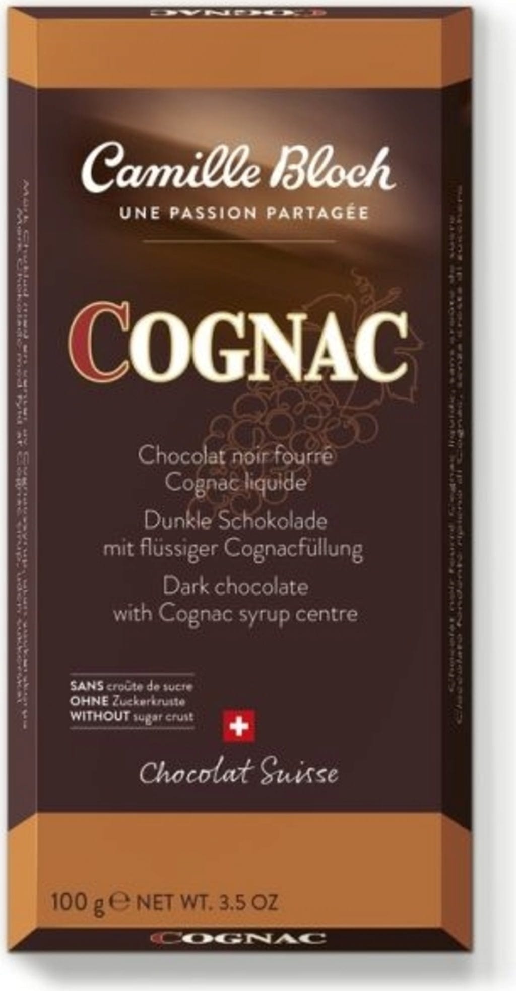 Camille Bloch Cioccolato Ripieno di Liquore - Senza Guscio di Cristalli di Zucchero, Cognac - Cioccolato fondente (100 g)