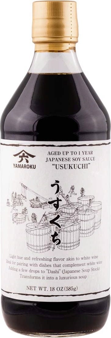 Questa salsa di soia chiara e più sapida viene fermentata tradizionalmente in botti di legno. È un ingrediente essenziale per la cucina giapponese e si abbina splendidamente per insaporire il dashi, le verdure o salse leggere.