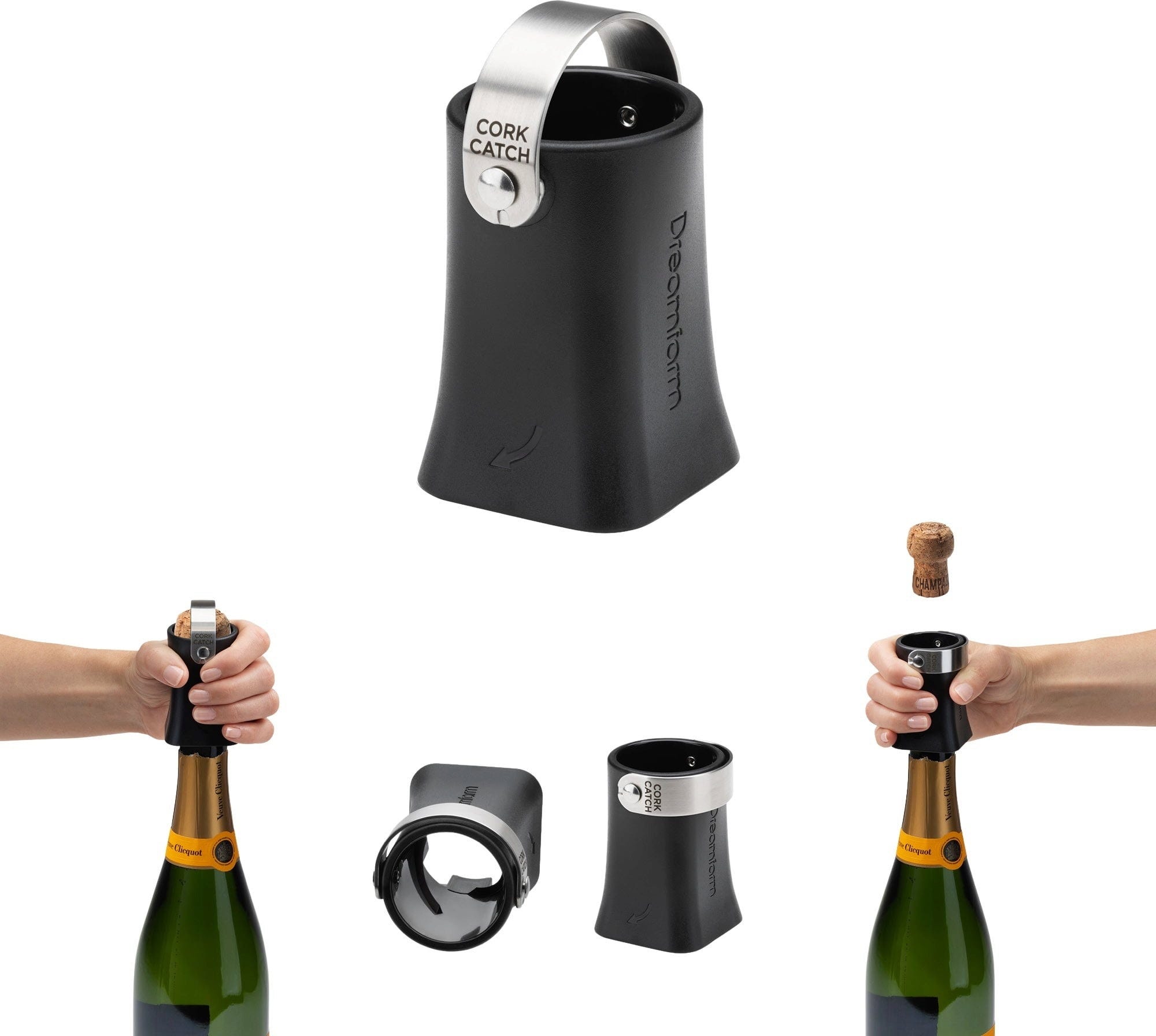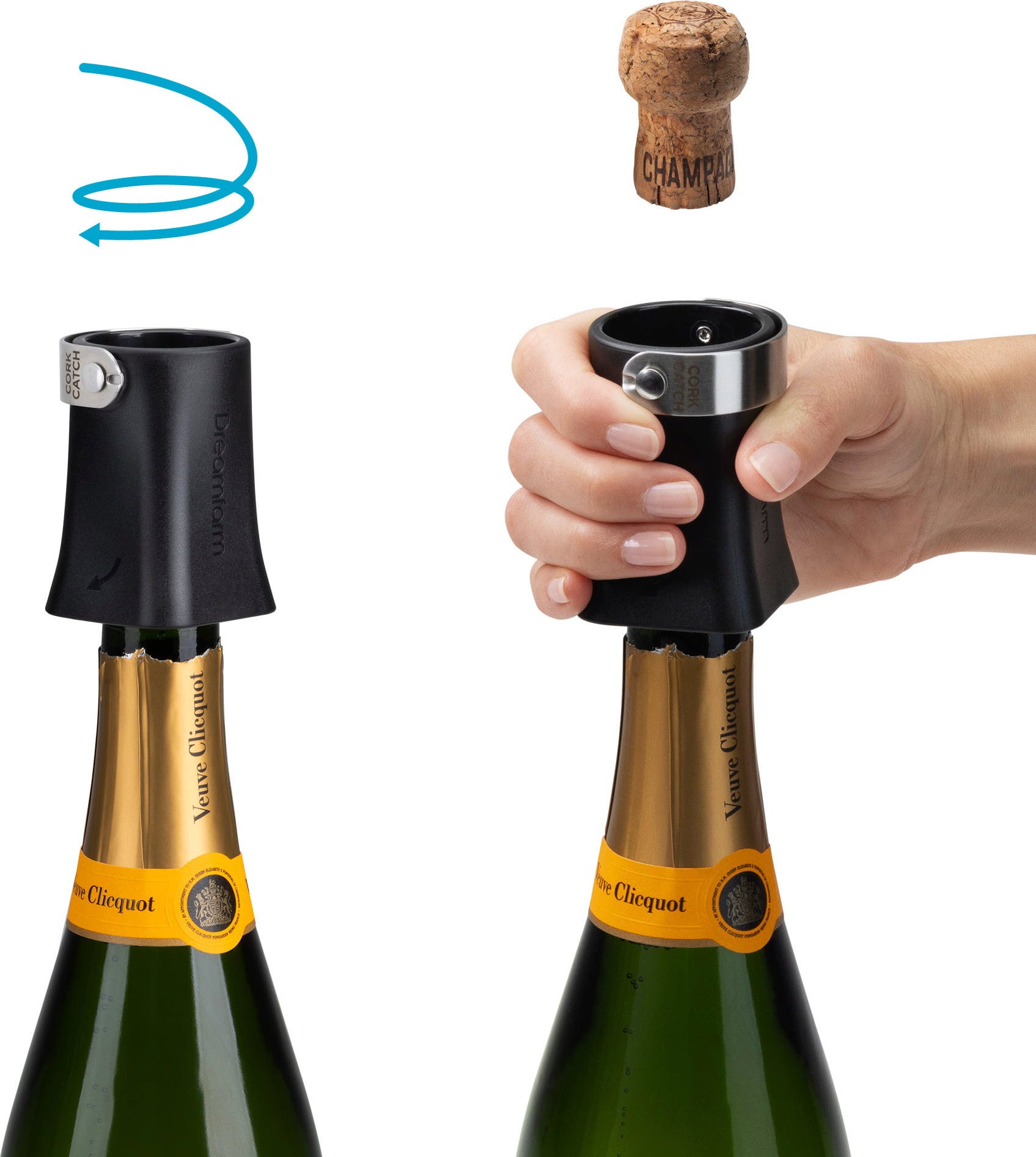Con Champop di Dreamfarm non dovrai più preoccuparti di tappi che schizzano via in modo incontrollato o di bevande che traboccano quando apri una bottiglia di champagne! Questo ingegnoso accessorio si applica semplicemente sul collo della bottiglia e si ruota leggermente per liberare il tappo in modo controllato. Grazie alle fessure di ventilazione integrate, la pressione viene rilasciata delicatamente e la velocità del tappo ridotta, così da essere raccolto in sicurezza all'interno del dispositivo: questa è la modalità Lock.