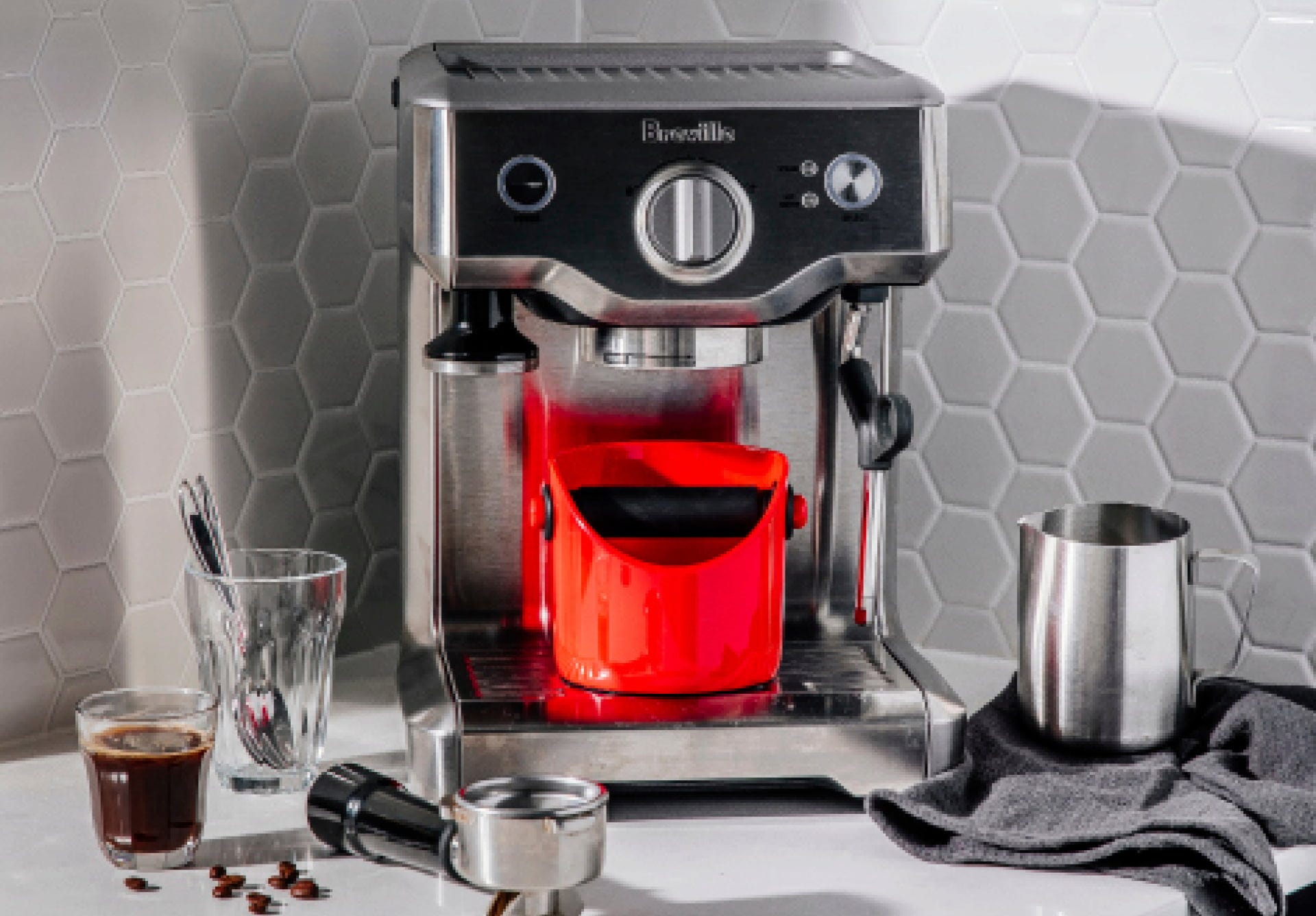 La barra di battitura rivestita in silicone riduce il rumore e protegge l'attrezzatura, mentre la base antiscivolo mantiene il contenitore sempre stabile al suo posto. Il contenitore interno rimovibile si pulisce in pochi istanti, lasciandoti più tempo per goderti il tuo espresso perfetto.