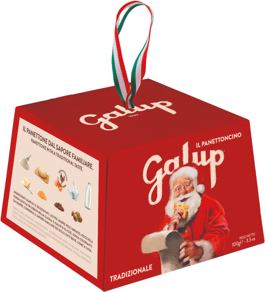 Scorze di agrumi candite arricchiscono l’impasto soffice e profumato, mentre la celebre glassa alla nocciola Galup, decorata con granella di zucchero e mandorle intere, dona il tocco classico e inconfondibile della tradizione. Questo mini panettone non può mancare durante le feste natalizie: una piccola delizia perfetta per regalare un pensiero dolce e speciale a chi ami!