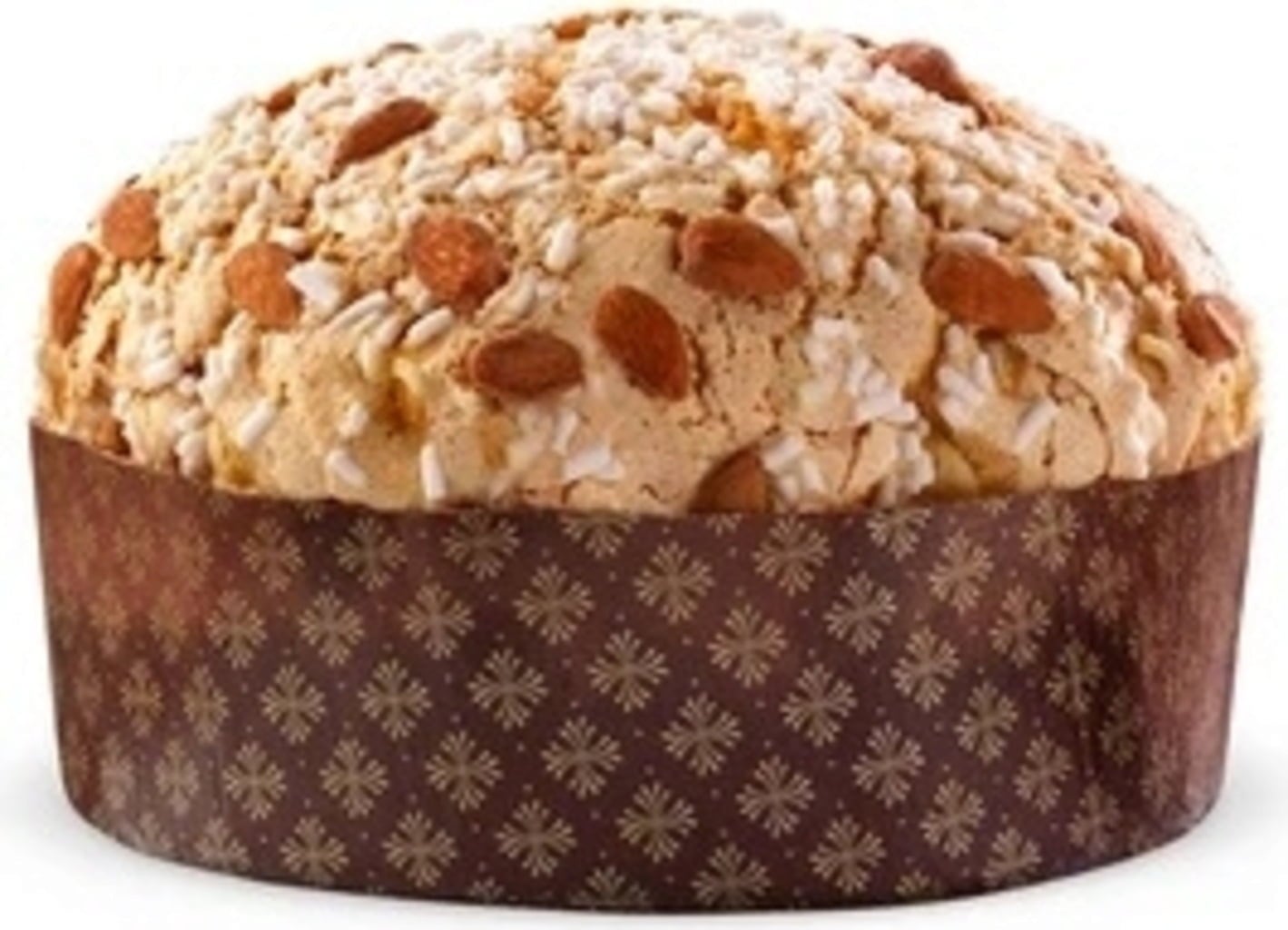 farina di frumento, 15 % uva sultanina, burro, zucchero, 8 % scorza di arancia (scorza di arancia, sciroppo di glucosio, fruttosio, saccarosio), tuorlo d'uovo, lievito madre naturale (farina di frumento, acqua), 4 % scorze di cedro candite (buccia di limone, sciroppo di glucosio-fruttosio, saccarosio, succo di limone concentrato), emulsionanti (mono- e digliceridi degli acidi grassi), latte intero, sciroppo di zucchero invertito, sale, miele, sciroppo di glucosio-fruttosio, estratto di malto d'orzo, aromi naturali, aroma naturale di vaniglia bourbon, 12 % glassa (zucchero, albume fresco, 9 % nocciole, farina di riso, amido di riso, zucchero a velo (zucchero, amido di frumento)), olio di semi di girasole, aromi naturali, rivestimento (5 % zucchero, 3 % mandorle)