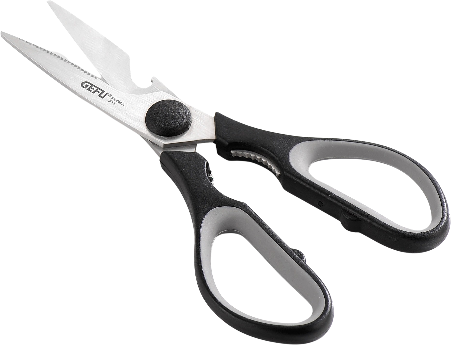 Queste pratiche forbici sono un vero multitalento che ti semplifica numerose operazioni in cucina. La lama affilata in acciaio inox di alta qualità garantisce un taglio preciso e affidabile in ogni utilizzo. L'impugnatura ergonomica in plastica, piacevole da tenere in mano, integra inoltre due funzioni extra davvero utili.