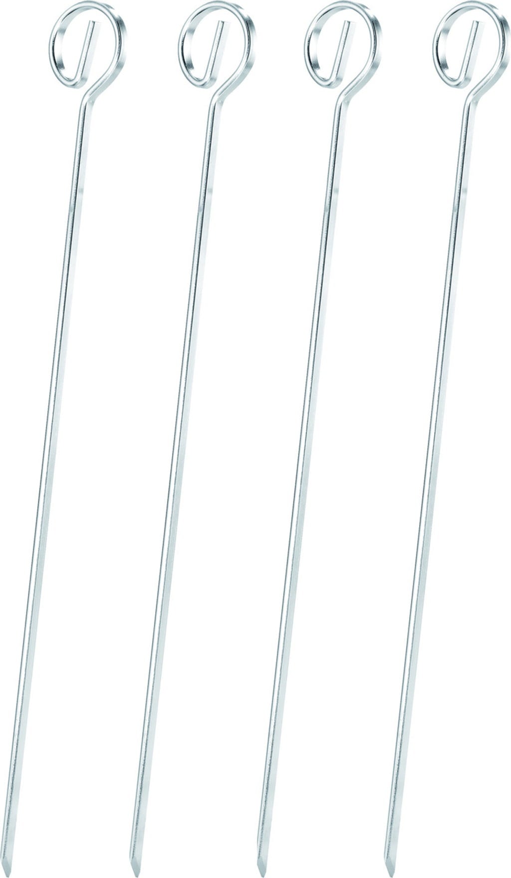 Il set da quattro spiedini, ciascuno lungo 23 cm, è realizzato in acciaio inox di alta qualità: robusto, durevole e riutilizzabile. E dopo la grigliata? Basta inserirli in lavastoviglie!