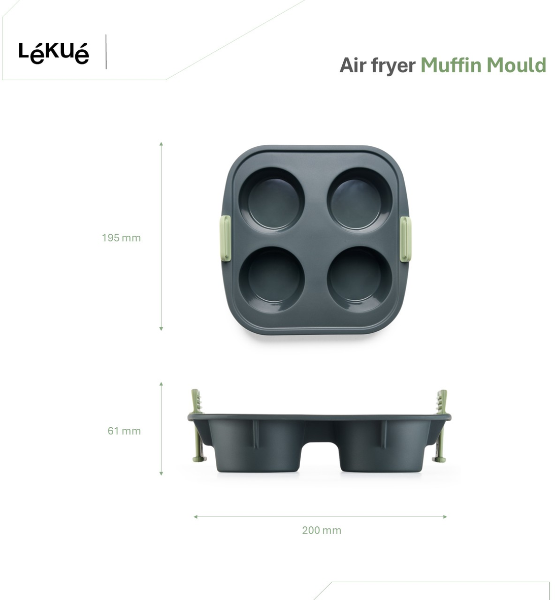 Prepara facilmente dei deliziosi muffin direttamente nella tua friggitrice ad aria, con questo pratico stampo per muffin.