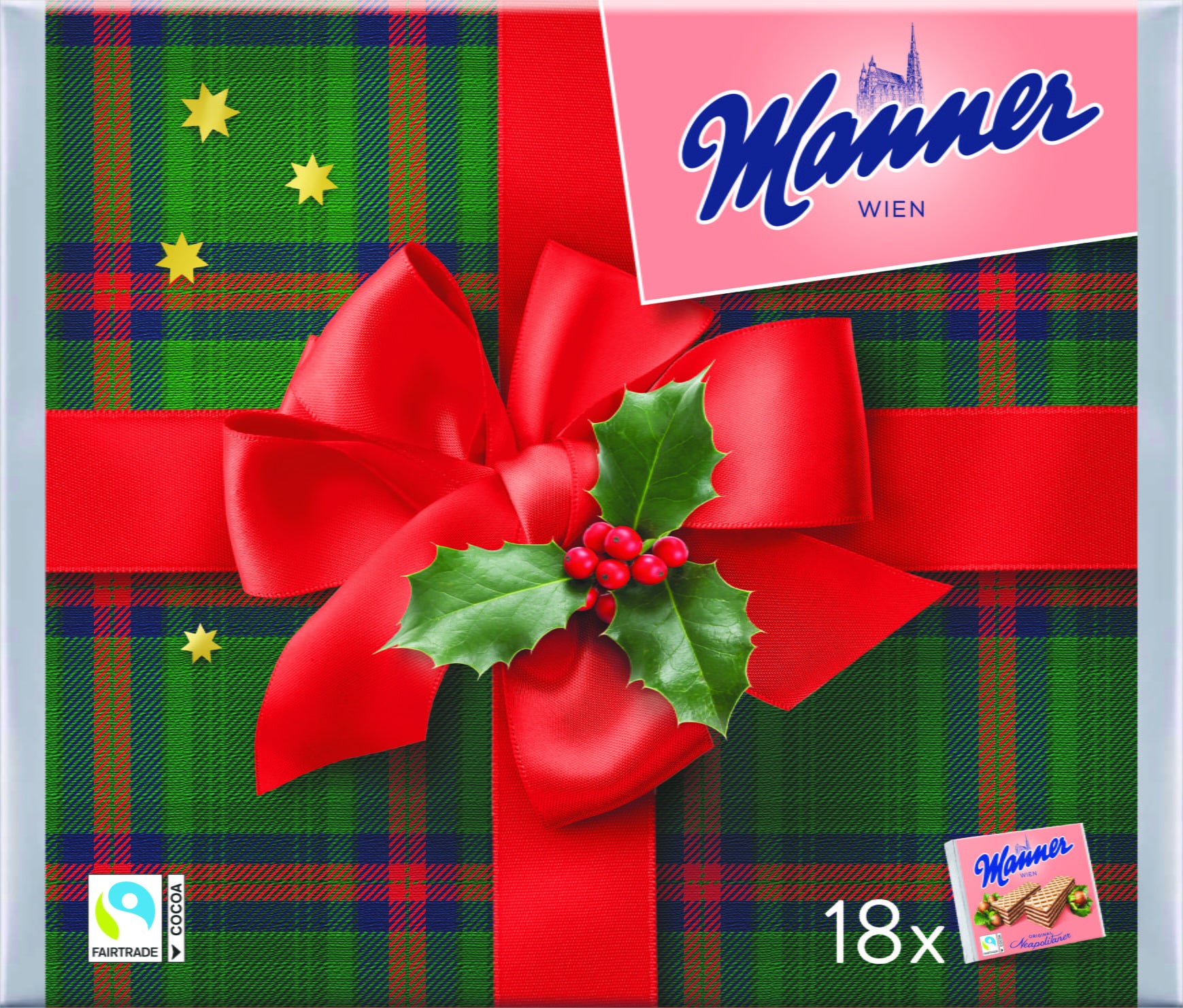 I classici wafer alla nocciola Manner sono molto popolari in Austria e sono apprezzati con entusiasmo da grandi e piccini. Questa grande edizione natalizia dal fantastico design festivo contiene 18 confezioni di wafer ed è il regalo perfetto per tutti i golosi e gli appassionati di questa specialità viennese.