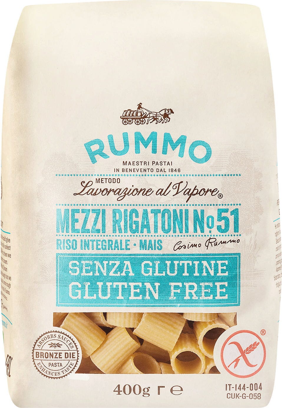 Rummo Senza Glutine - Mezzi Rigatoni N°51, 400 g